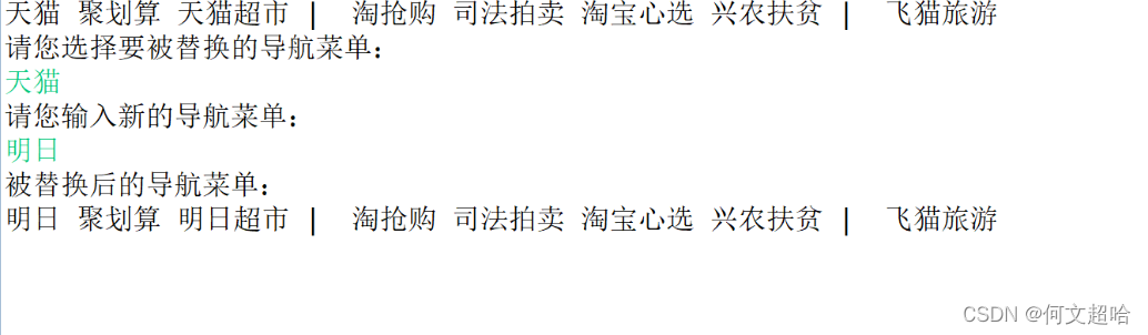 System.out.println("被替换后的导航菜单:\n"+d);//输出内容