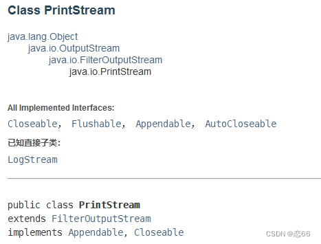 看图,PrintStream这个类是OutputStream的孙子,其次它是一个实体类,实现了两个接口。