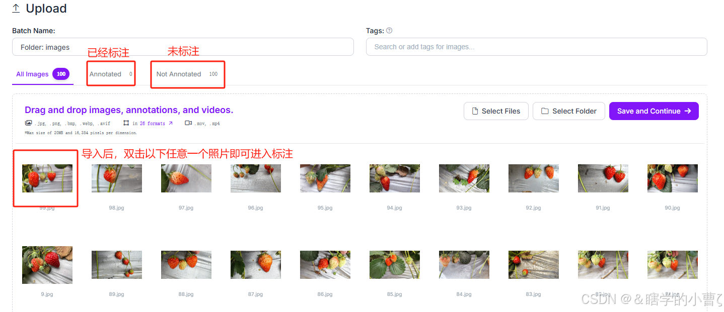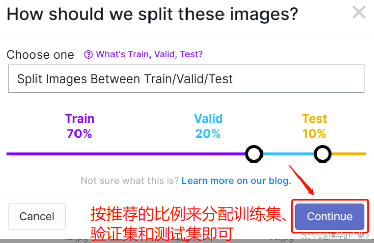 图片标注完成,返回后点击右上方进行保存。选择“Split Images Between Train/Vaild/Test”,根据系统推荐自动划分训练集、验证集和测试集,最后导出文件压缩包至电脑。