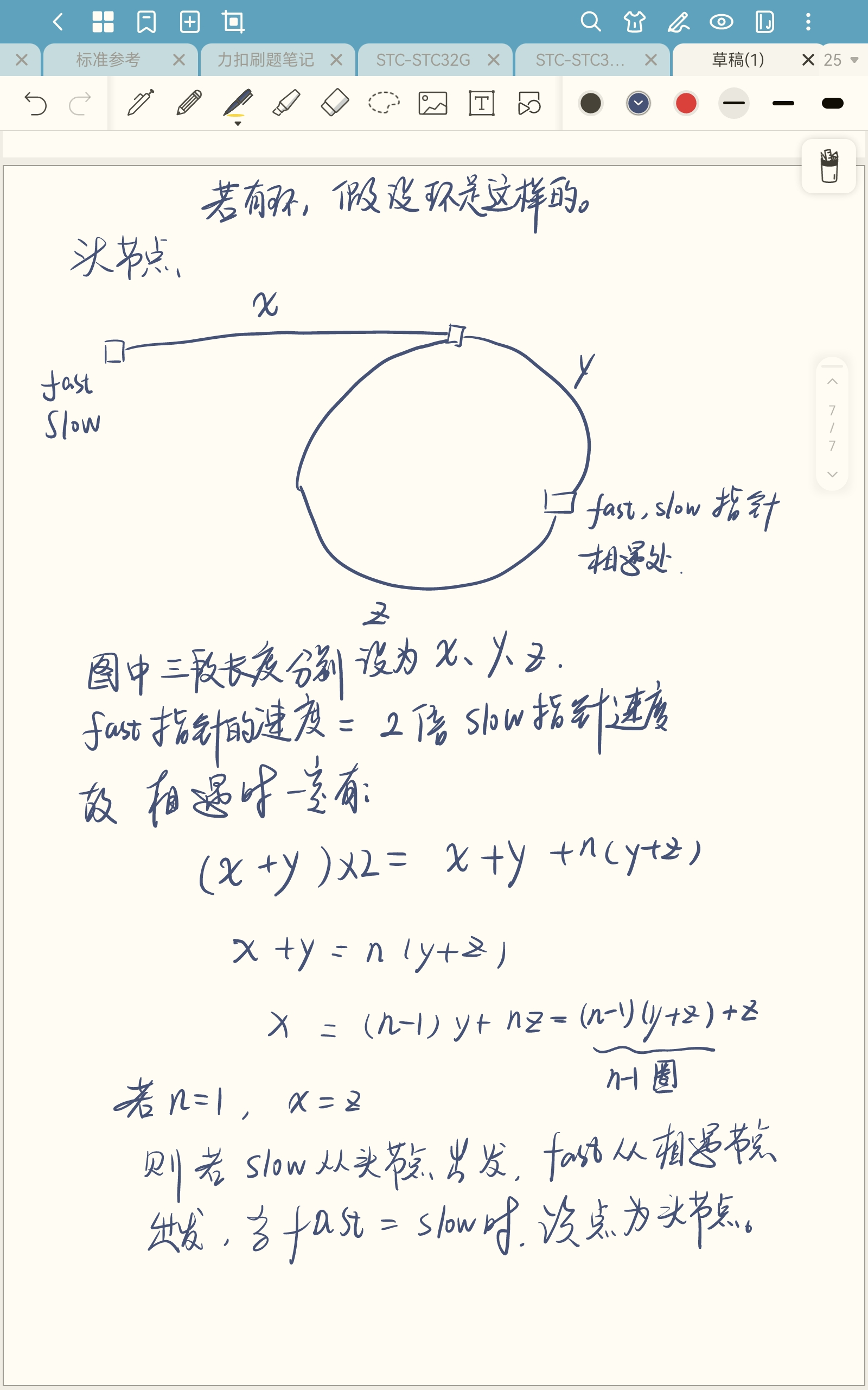 while(fast != NULL && fast->next != NULL) { //寻找快慢指针的相遇节点