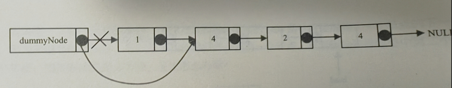 //注意这里使用的是_dummyHead而不是_dummyHead->next,因为要删除一个节点,必须要去到他的前一个节点才可以完成。在获取某一个节点的值时,需要到达指定节点,故是_dummyHead->next