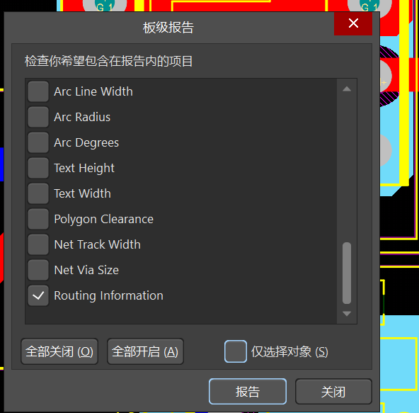 首先,第一步是检查连线是否完整,所以在DRC之前可以看看板子信息报告,点击报告-板子信息,在板子信息中点击routing information导出,可以看见连线的完整性。