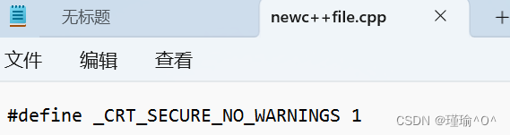 方法五.在newc++file.cpp文件中添加 #define _CRT_SECURE_NO_WARNINGS 1