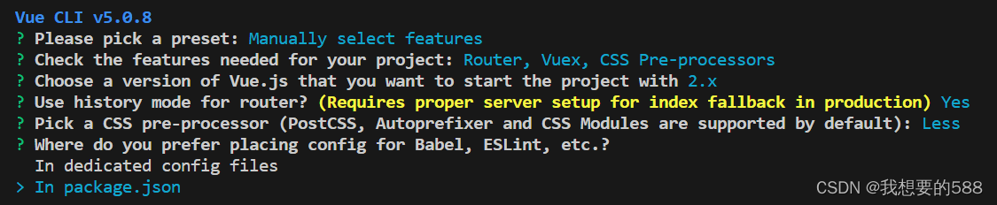 ③选择基本配置(这里我选择 Router、vuex、css解析器