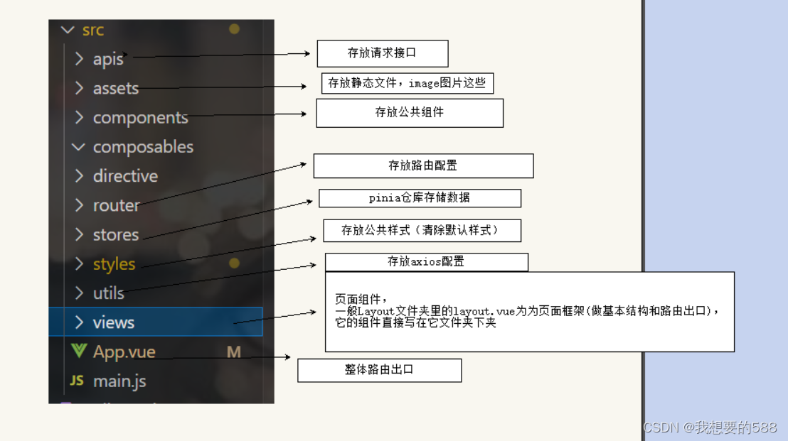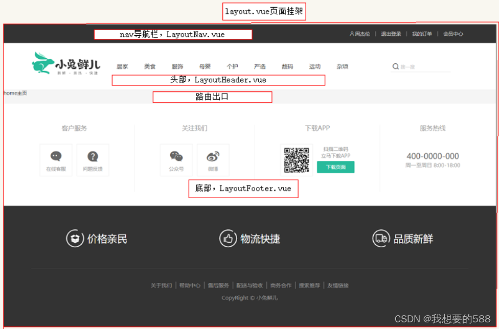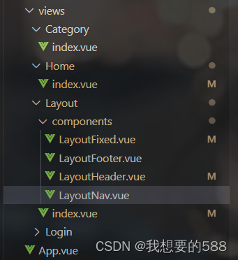 Layout文件为页面骨架,在里面书写页面基本结构还有二级路由出口(它的组件直接写里面),然后再写其它页面一级以及二级路由页面等等