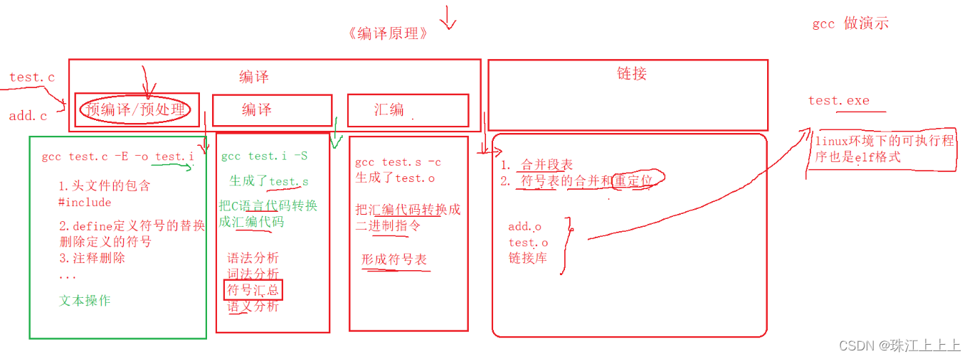预处理完成之后就停下来,预处理之后产生的结果都放在test.i文件中