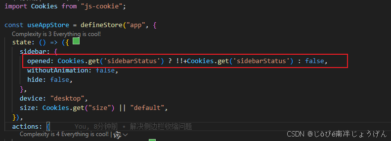 // 初始化逻辑:优先从Cookies读取'sidebarStatus'(若依框架中常用Cookies持久化状态)