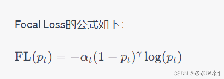 (不读αt 是一个调整因子,可以根据实际情况进行设置,通常可以用来平衡正负样本的权重。γ 是一个可调参数,控制了焦点(focus)的程度。较小的 γ 会减弱焦点的效果,而较大的 γ 会增强焦点。)