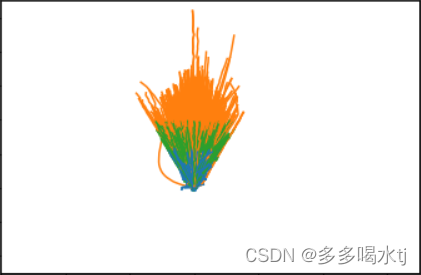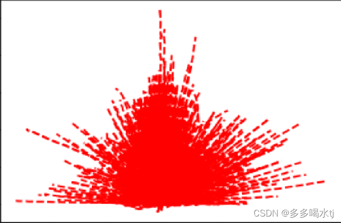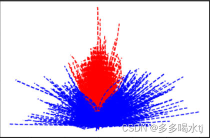 (2)将轨迹数据根据轨迹的结束点的角度信息进行筛选和显示,以便对特定角度范围内的轨迹和超过某个角度的轨迹进行可视化。红色虚线表示角度小于20的轨迹,蓝色虚线表示角度大于20的轨迹。