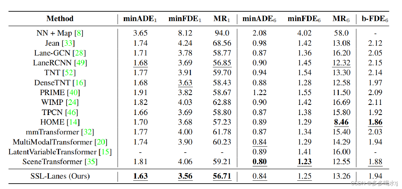minADE和minFDE分别是前K个预测中的最小ADE和FDE。
