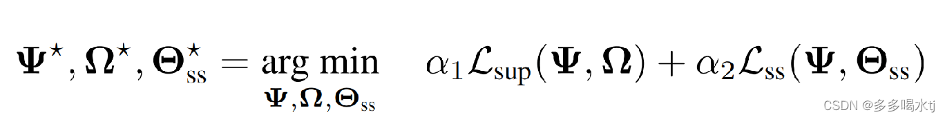 式中,最右边的Lss(·,·)为自监督任务的损失函数,等号左边的第三项Θss为相应的线性变换参数,α1, α2∈R>0为监督损失和自监督损失的权值。