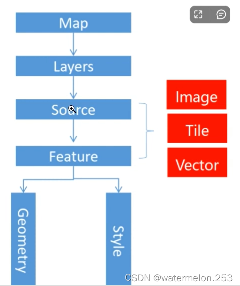 Map==>Layer==>Source==>Feature==>Geometry/Style