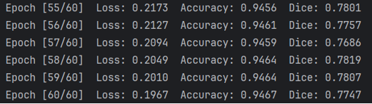 f"Loss: {loss:.4f} Accuracy: {acc:.4f} Dice: {dice:.4f}")