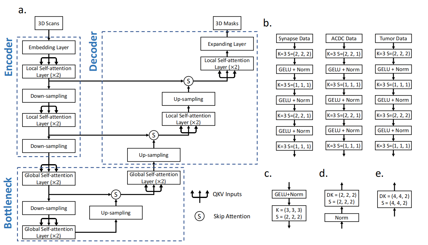(3)decoder 仍保留 nnU-Net 风格:上采样 + 跳连 + 卷积(非纯 Transformer decoder)