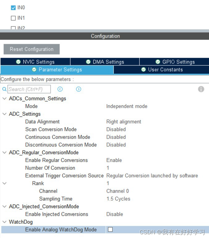 关闭扫描模式:只转换ADC_SQRx或ADC_JSQR选中的第一个通道