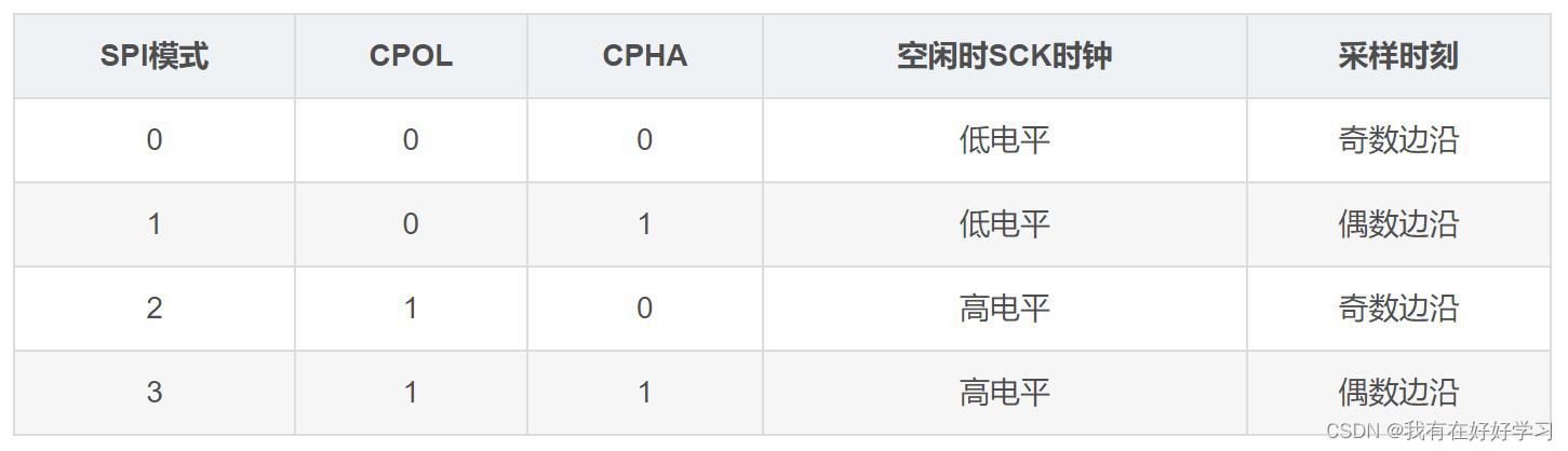 0:SCK的第一(奇数)边沿进行数据位采样,数据在第一个时钟边沿被锁存