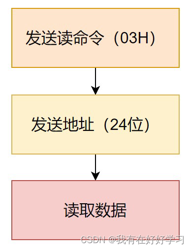 拉低CS片选 → 发送03H→ 发送24位地址 → 读取数据(1~n) → 拉高CS片选页写时序 (02H)