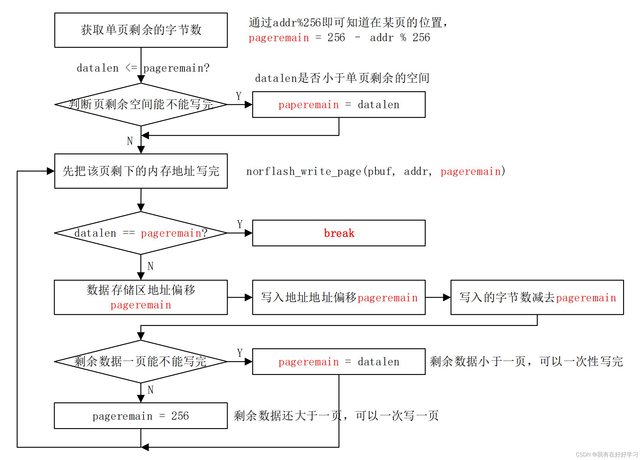 * 当写入直接比页内剩余地址还多的时候, 先写完整个页内剩余地址, 然后根据剩余长度进行不同处理