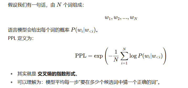 如果 PPL = 100,说明模型几乎像在 100 个选项里乱猜。