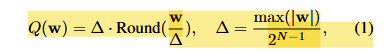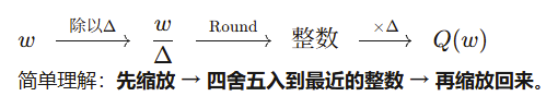 基本量化操作:将权重 ( w ) 量化为低比特整数 ( Q(w) ),量化函数Q(w)