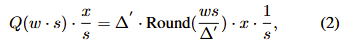 变成对角矩阵(这样能对不同通道单独缩放)。所以这部分是先缩放权重,再量化。