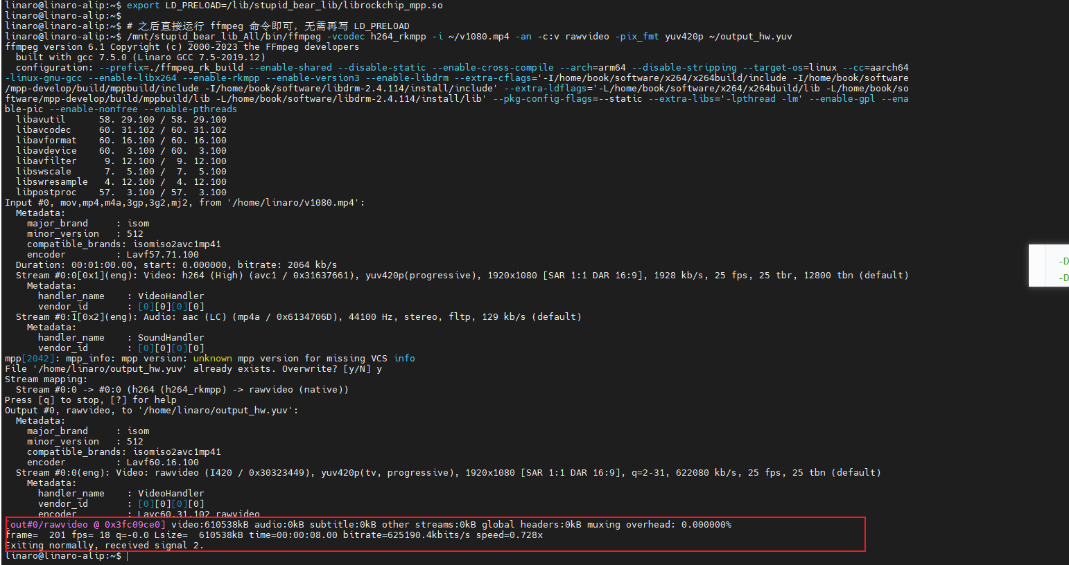 /mnt/stupid_bear_lib_All/bin/ffmpeg -vcodec h264_rkmpp -i ~/v1080.mp4 -an -c:v rawvideo -pix_fmt yuv420p ~/output_hw.yuv