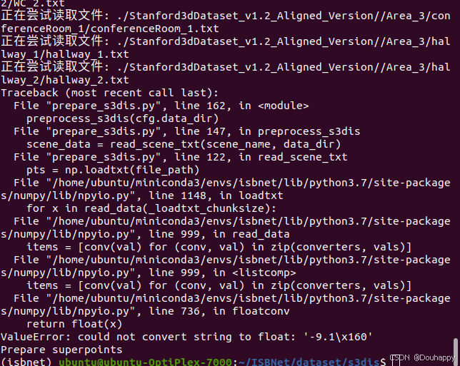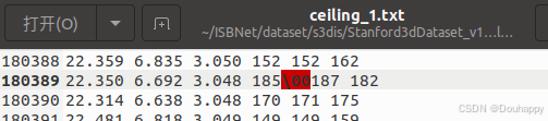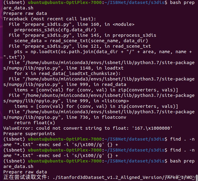 prepare_s3dis.py 在尝试读取 Area_X/room_Y/room_Y.txt 时,发现文件中包含非法字符串 '167.\x1000000'(应为 167.1000000)。