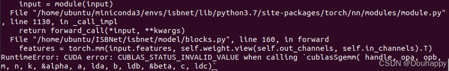 这个CUDA错误 (CUBLAS_STATUS_INVALID_VALUE) 通常是由于GPU内存不足或张量形状不匹配导致的