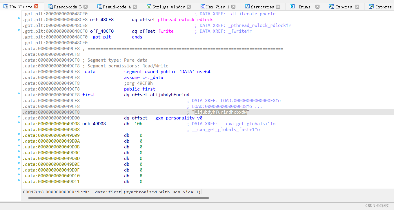 我们需要找到myapplication,将其修改为zip后缀,在里面就可以找到libmyapplication.so文件,用IDA打开它在字符串中找到Getkey,双击进去之后,搜索first,将其进行base64编码,取前面的16位
