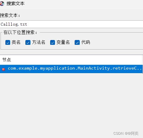 2023年初,某地公安机关抓获一个网络诈骗技术嫌疑人,公安机关在扣押嫌疑人后,对嫌疑人手机进行数据提取,在提取完成分析发现嫌疑人将通话记录及短信记录进行了删除,根据嫌疑人交代,其在删除通话及短信记录前使用过同伙编写的测试软件,该安卓程序会读取通话及短信记录并存放到手机中。由于通话和短信记录对案件很重要,请参赛队员分析手机镜像及对应apk,完成取证题目。