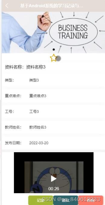 学习资料,在学习资料页面可以查看资料名称、资料封面、类型、视频、重点难点、工号、教师姓名、发布日期、资料简介、资料内容等信息,可根据需要进行加入记录、建议和咨询操作