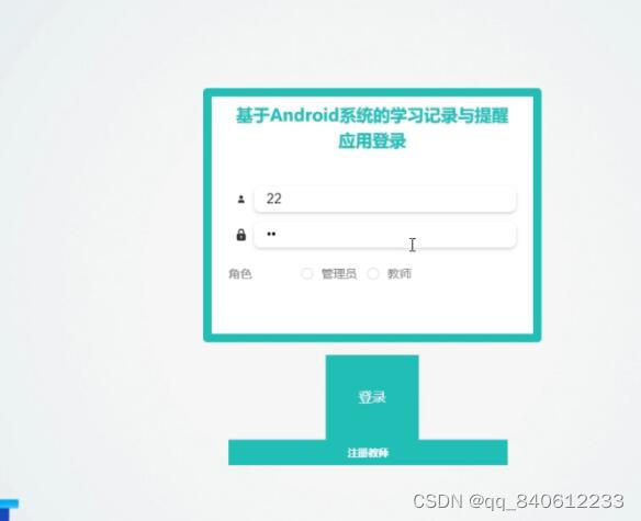 后台登录,管理员和教师通过输入用户名、密码,选择角色并点击登录进行系统登录操作
