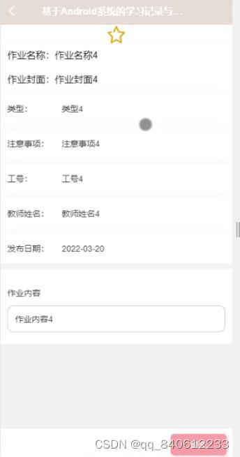 作业信息,在作业信息页面可以查看作业名称、作业封面、类型、注意事项、工号、教师姓名、发布日期、作业内容等信息,并进行提交操作