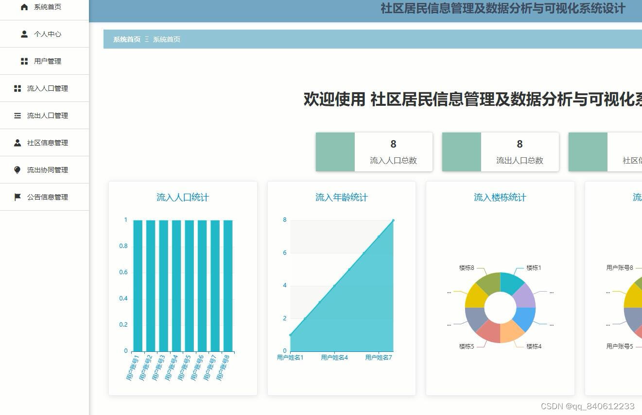 本文介绍了一款基于Python和Django开发的社区居民信息管理及数据分析系统,包括数据库设计、管理员和社区居民功能,以及前后端实现。系统涵盖了居民管理、流入流出人口、公告管理等功能,通过可视化工具展示数据,推动社区信息化进程。