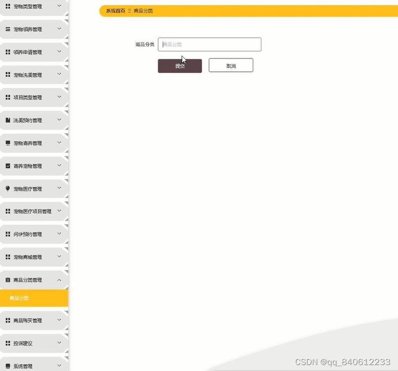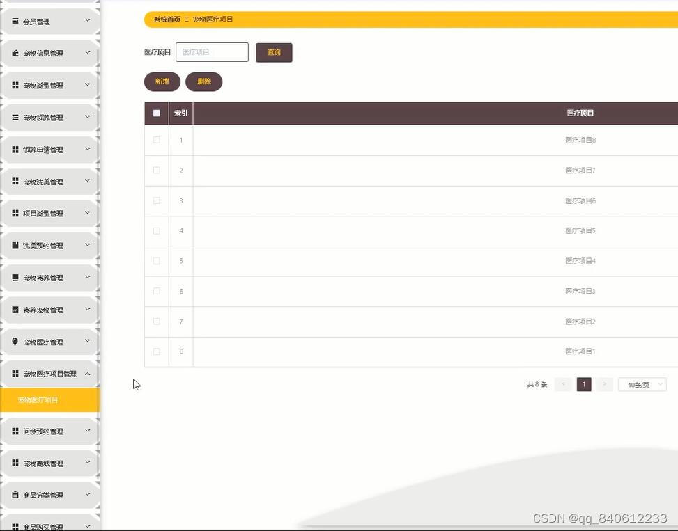 (3)管理员具有权限,对宠物信息、宠物领养、宠物洗美、宠物寄养、宠物医疗、宠物商城进行添加、修改、删除等[11]。