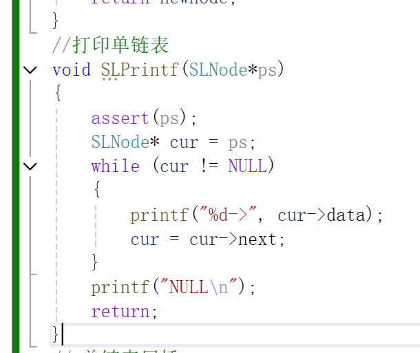 接下来是单链表的打印,这时候思考,空链表能不能打印呢?应该是可以滴,所以这个assert断言是不是有点画蛇添足了,对的,应该删去!