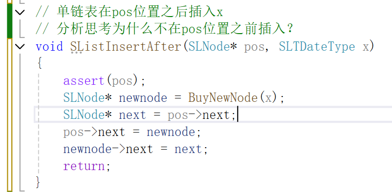 看,是不是就比动态顺序表简单太多啦,不用大量移动数据,但是,思考一下,如果在pos位置之前插入数据呢?
