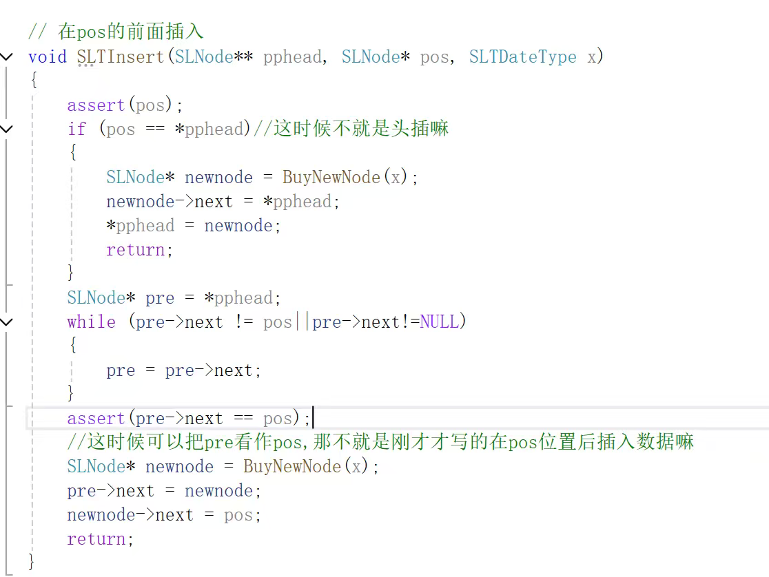单链表在pos位置前插入数据,这时你看,十分麻烦,先考虑pos是不是头,要不要来一个头插,然后再考虑pos在不在*pphead这个链表里面儿,并且还要遍历链表找到pos前的那个元素数据,十分麻烦