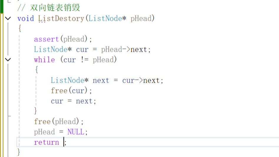 双向链表的销毁就比较简单,得先断言,哨兵卫不能为空昂,不然就是传错值了呢,然后从哨兵卫的next开始释放,最后再释放哨兵卫,记得置空哦~避免野指针