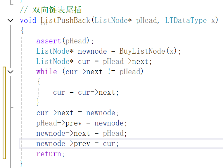双链表的尾插这块儿比较简单,记得末尾数据的后驱节点是哨兵卫就行(这块儿还需要遍历双链表找尾吗?!根本不需要!pHead->prev就是尾!所以这块儿的while很冗余)