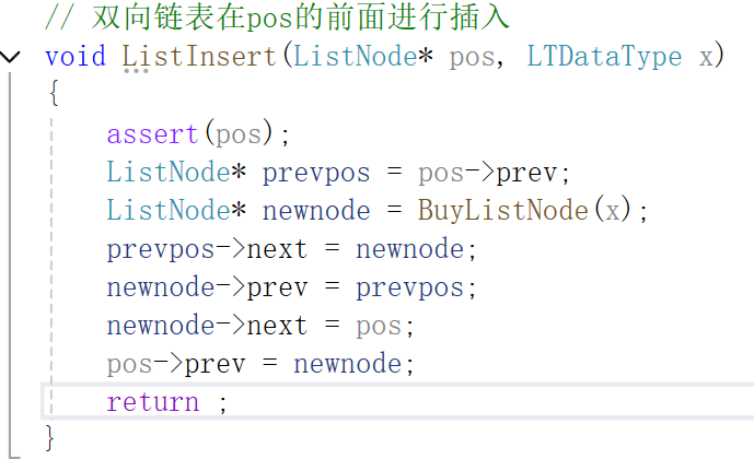 在pos位置前插入!看吧,这次就不需要定一个指针,再从头找啦,直接pos->prev,十分方便啦!