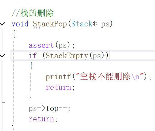 栈的删除,这儿就可以用咱的函数啦,刚写得判断栈是不是空,如果空,那就不能删除了昂