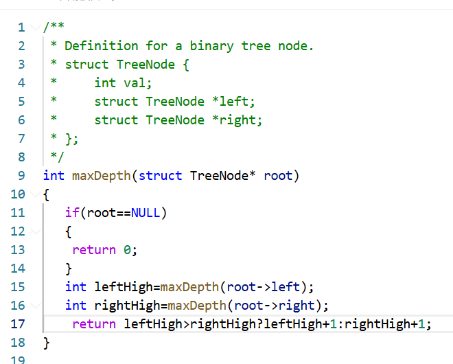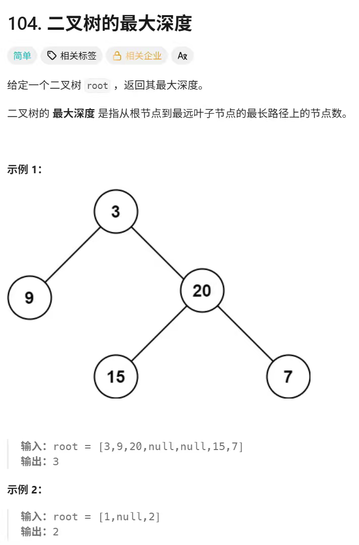 最大深度,那就比较简单啦~不就是谁大返回谁嘛,root=0那就返回0呗,每次比较一下他的长度,左子树长返回左子树,右子树长,返回右子树,然后返回的时候要记得给它+1!因为还有返回的这一层呢昂~,最好再设置一个变量保存当前长度嘞,不然你每次比较都要下去找一遍,数据比较少还好,多了,那复杂度真是指数上升昂。