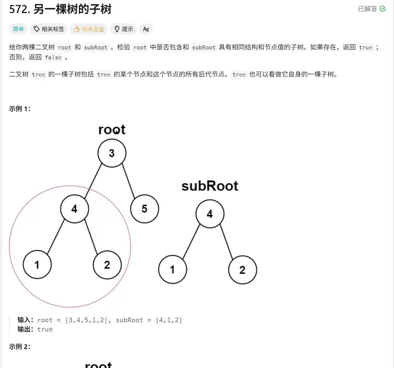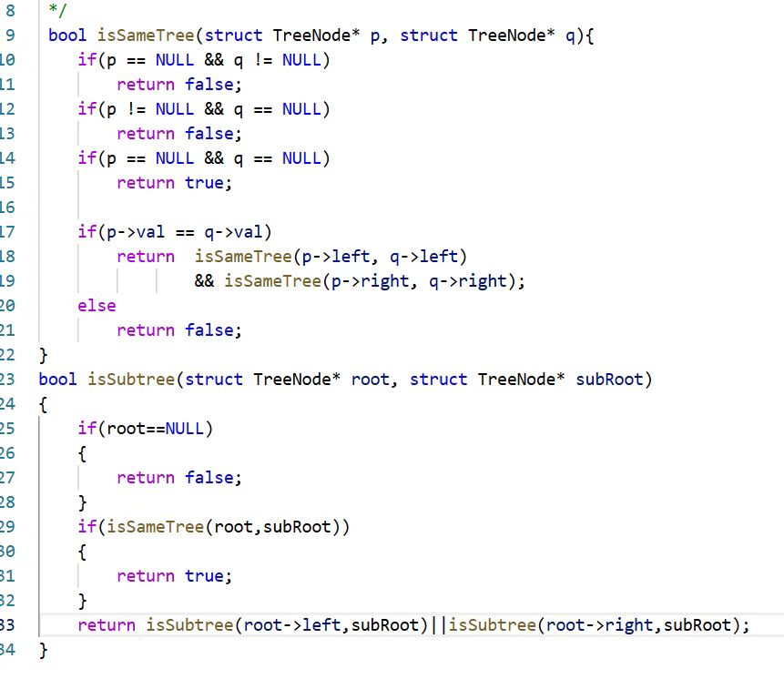你想想,是不是从这个大树层级往下看嘞,如果他俩都同时为空……~~~但是!这有一个魔鬼细节昂,在子函数中,应该满足左树&&右树,因为是判断当前两棵树是否相等,而外面儿,只需要||就可以啦,只要这棵树中,左子树或者右子树等于那颗树就可以啦
