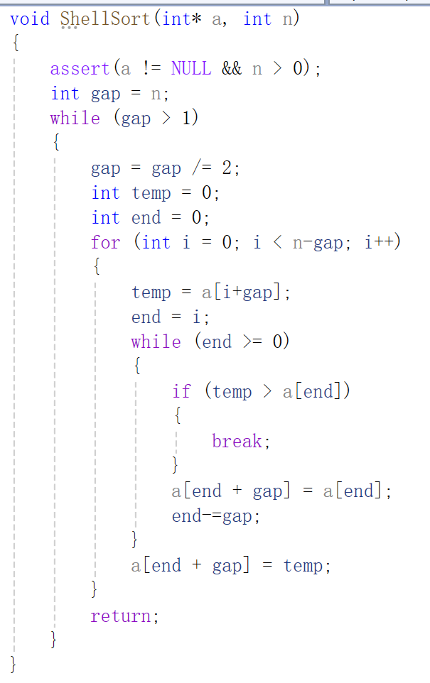 这个是希尔排序,其实和插入排序是类似的,相当于是插入排序的pro max版本哈,这次我设置了一个gap,也就是间隔,唉~我不一次一个一个来了,我现在直接跳gap个,然后gap÷=2,最后等于1的时候,不就是直接插入排序嘛,而且还是经过前面儿调整过的,这时候已经接近有序了昂,此刻的直接插入排序效率就想当高了。