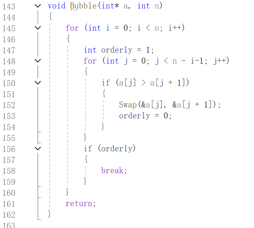 然后还有一个,就是,你这一趟下去,如果一次都没交换,那么他是不是就已经有序了呢,你想一想,所以设置一个变量,记录有没有交换,没交换,直接就结束~
