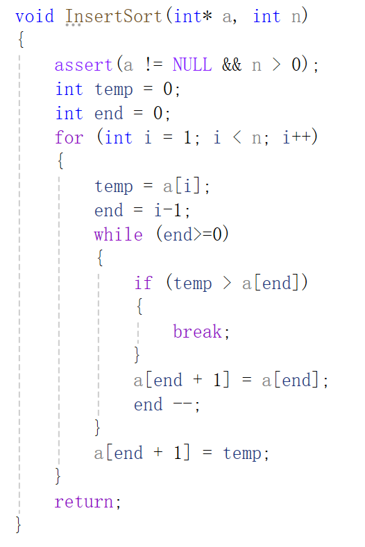 for循环中i为什么开始=1,不等于0呢,因为第一个数,只有一个数的话,他肯定是有序的,所以不需要管呢