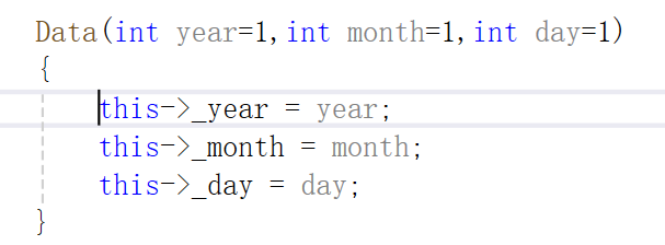 这块儿还有一个知识点就是,其实这些类内的函数,第一个参数,都默认传了一个this指针,不然他怎么访问类内的成员变量嘞,所以他那些_year的访问,其实都是简写,完整应该是