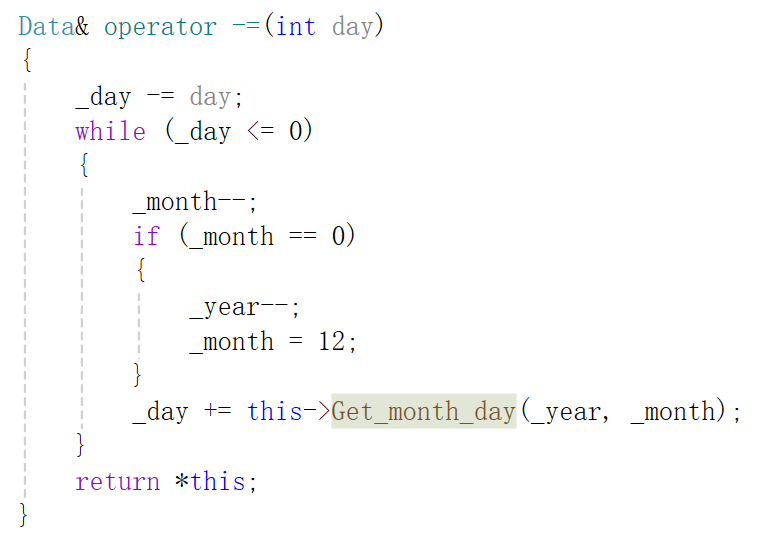 这就是我每次加上当前月的天数,然后如果他≤0,那就给我进去,月份--,加上当月的天数,依次循环。